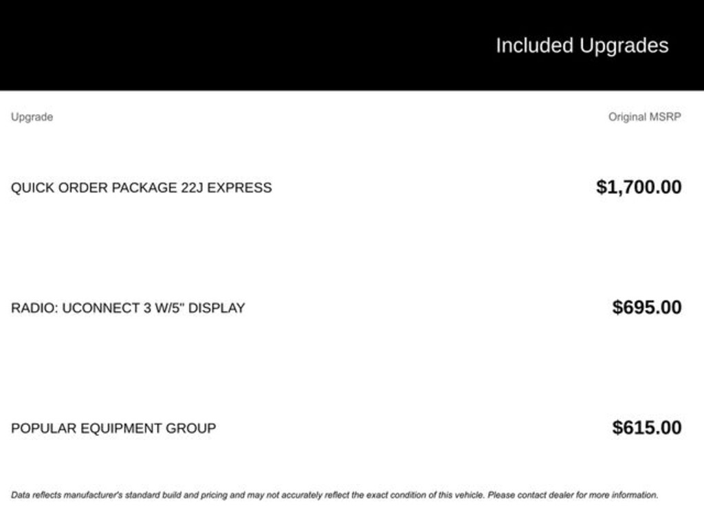 - Radio: Uconnect 3 w/5" Display