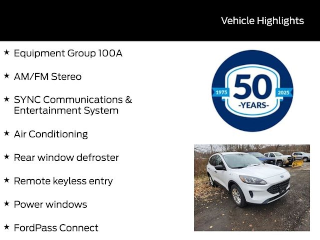 Recent Arrival! 2022 Ford Escape S 1.5L EcoBoost 8-Speed Automatic AWD 4D Sport Utility Oxford White Air Conditioning, AM/FM Stereo, Equipment Group 100A, Exterior Parking Camera Rear, FordPass Connect, Front Bucket Seats, Front Center Armrest, Power door mirrors, Power windows, Rear window defroster, Rear window wiper, Remote keyless entry, Speed control, SYNC Communications & Entertainment System, Tilt steering wheel, Wheels: 17" Shadow Silver-Painted Aluminum. 26/31 City/Highway MPG